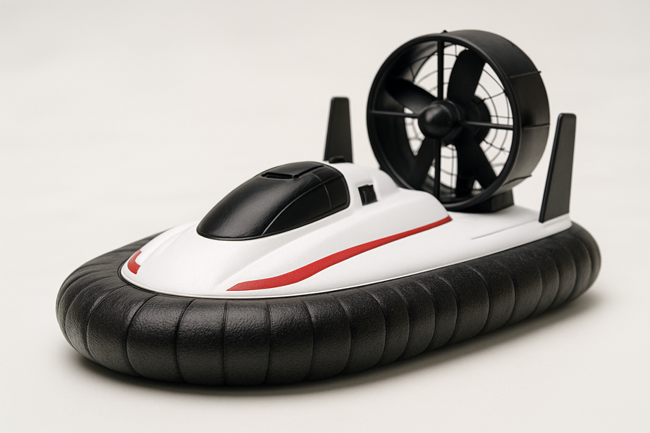Build and pilot your hovercraft to master challenging tracks with precision.